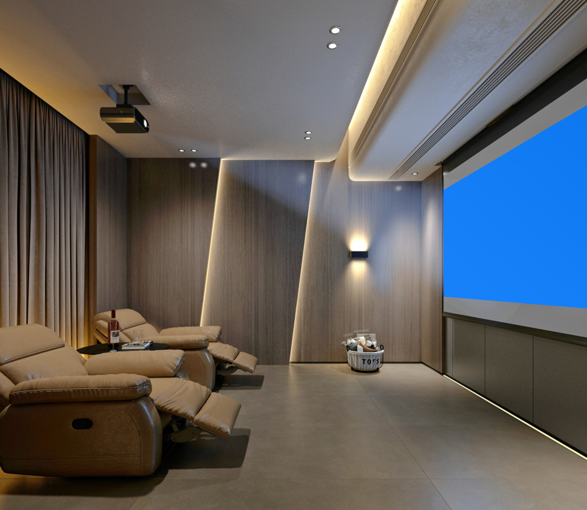 - Custom Home Cinemas: Design and installation of high-end home theatres with advanced audio-visual systems, comfortable seating, and elegant finishes.