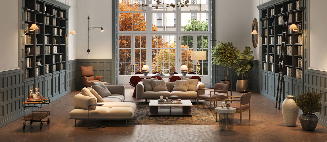 • High-quality finishes including natural woods, textured paints, and premium panelling